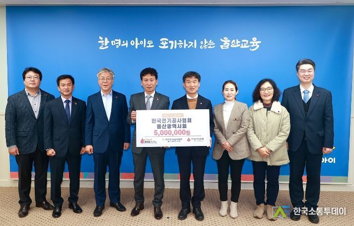 한국소통투데이 관리자 기자 | 한국전기공사협회 울산광역시회(회장 홍상범)가 11일 울산광역시교육청(교육감 천창수)에 저소득층 학생 장학금 500만 원을 전달했다.