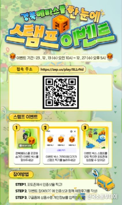 한국소통투데이 관리자 기자 | 경북교육청은 13일부터 27일까지 2주간 도내 초․중․고 학생과 교직원을 대상으로 ‘경북 메타스쿨 한눈에’ 오픈 이벤트를 개최한다.