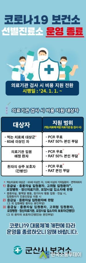 한국소통투데이 관리자 기자 | 군산시 보건소는 코로나19 대응체계 개편에 따라 새해 1월 1일부터 선별진료소 운영을 종료한다고 밝혔다.