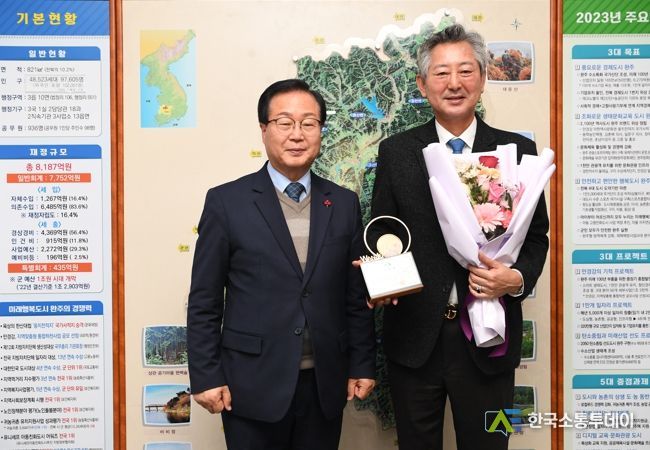 한국소통투데이 관리자 기자 | (재)완주군인재육성재단이 10년 가까이 총 1억2,000만 원을 기탁한 정석케미칼 주식회사에 감사패를 전달했다.