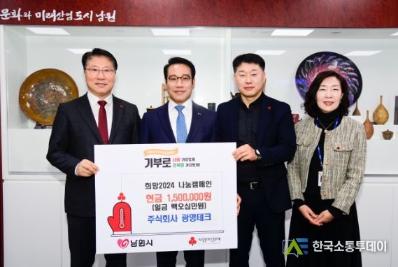한국소통투데이 관리자 기자 | 남원시는 29일 주식회사 광명테크에서 이웃돕기 성금 1백50만원, 오케이전산에서 2백만원을 기탁했다고 밝혔다.