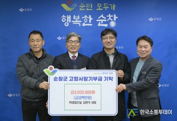 한국소통투데이 관리자 기자 | 순창군은 2일 ㈜피에스종합건설 김판석 대표가 고향사랑기부금 300만원을 순창군에 기부했다고 밝혔다.