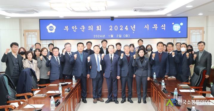 한국소통투데이 관리자 기자 | 부안군의회(의장 김광수)는 새해 의정활동 시작에 앞서 2일 의회 본회의장에서 의원 및 의회사무과 직원 등 30여 명이 참석한 가운데 2024년 시무식을 열고 갑진년 새해를 희망차게 출발했다.
