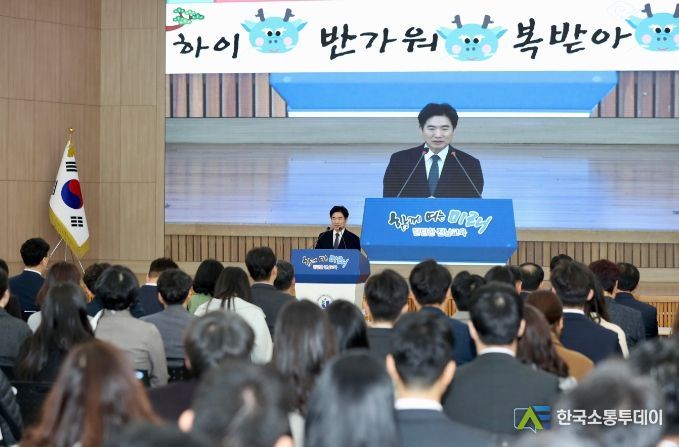 이날 시무식은 김대중 교육감을 비롯한 간부진과 1월 1일 자 본청 전입 직원 등이 참석한 가운데 진행됐으며, 현장에 참석하지 못한 직원들은 각자의 사무실에서 영상 시스템을 통해 시무식에 함께했다.