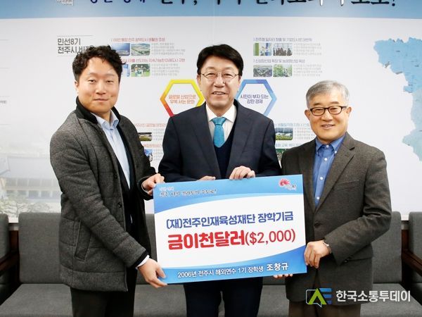 한국소통투데이 관리자 기자 | (재)전주인재육성재단의 해외어학연수 장학생으로 선발이 된 후 꿈을 이룬 선배가 전주지역 후배 인재들을 위한 장학금을 후원했다.