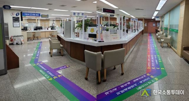 이에 시는 민원동 계단 및 2층 바닥에 민원 업무별로 색상이 다른 유도선을 설치해 시각적 효과를 높이는 동시에 처음 방문하는 민원인도 쉽게 원하는 창구를 바로 찾아갈 수 있도록 했다.