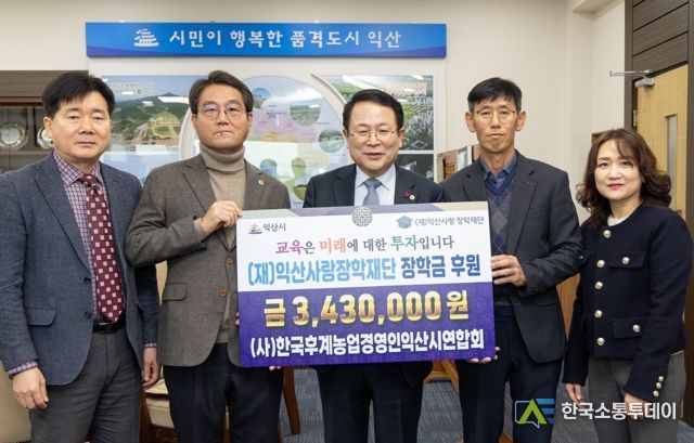 한국소통투데이 관리자 기자 | ㈔한국후계농업경영인익산시연합회는 11일 익산사랑장학재단에 장학금 343만 원을 기탁했다.