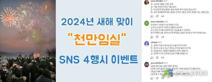특히 4행시 댓글에는‘천=천혜의 자연이 빚어낸 최고의 볼거리 먹거리와, 만=만인이 누릴 수 있는 가치 있는 추억과 힐링이 있기에, 임=임실을 찾는 사람들의 발걸음은 언제나 설렙니다, 실=실제로 다가온 천만관광 임실시대를 응원합니다.’와 같은 댓글들이 속속 올라오고 있다.