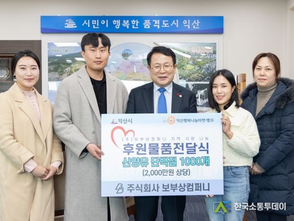 한국소통투데이 관리자 기자 | ㈜보부상컴퍼니가 12일 익산시청을 방문해 나눔곳간에 산양유 단백질 1,000개를 기탁했다.