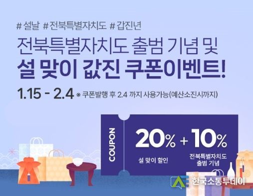 한국소통투데이 관리자 기자 | 장수군 농특산물 대표 온라인 쇼핑몰 “장수몰”에서 2024년 갑진년 설맞이 20%에 전북특별자치도 출범 기념 10%를 더해 30%의 “값진” 할인 이벤트를 한다.