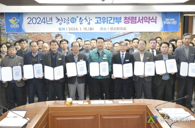 한국소통투데이 관리자 기자 | 순창군이 15일 군청 영상회의실에서 최영일 군수를 비롯해 5급 이상 간부 공무원 39명이 참석해 청렴 서약 및 결의를 다졌다.