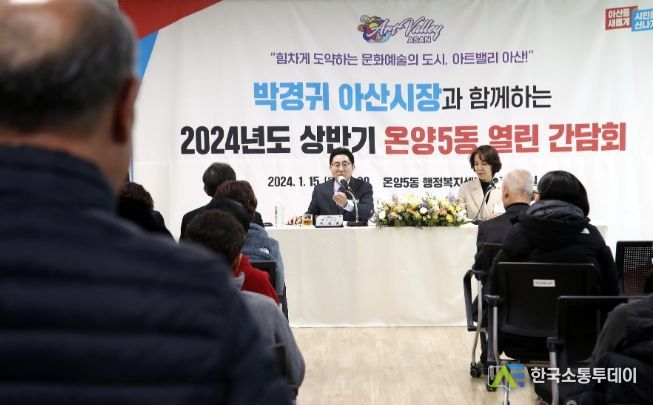 한국소통투데이 관리자 기자 | 박경귀 아산시장은 15일 ‘2024 상반기 열린간담회’ 첫 순서로 온양5동 행정복지센터를 찾아 지역발전을 위한 다양한 의견을 나눴다.