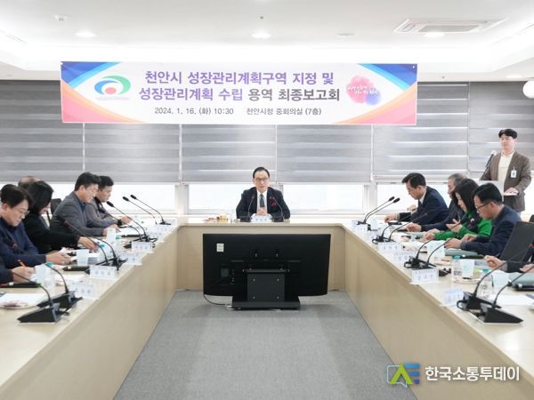 시는 이날 시청 중회의실에서 박상돈 시장을 비롯해 성장관리계획 관련 부서장 및 관련 전문가와 용역사가 참석한 가운데 ‘천안시 성장관리계획구역 지정 및 계획수립 용역 최종보고회’를 개최했다.