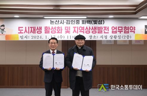 한국소통투데이 관리자 기자 | 논산시는 17일 논산시청 상황실에서 빛섬(김인중 화백, KAIST 석좌교수)과 도시재생 및 지역상생발전 협약을 체결했다고 밝혔다.