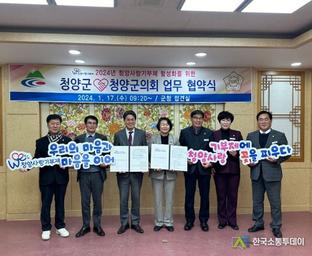 한국소통투데이 관리자 기자 | 청양군과 청양군의회가 지난 17일 군청 접견실에서청양사랑기부제 활성화를 위한 업무협약식을 개최했다.