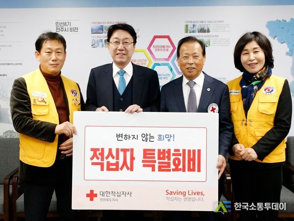 한국소통투데이 관리자 기자 | 전주시는 18일 기부문화 확산과 적십자 회비 모금을 독려하기 위해 대한적십자사 전북지사에 2024년도 적십자 특별회비를 전달했다.
