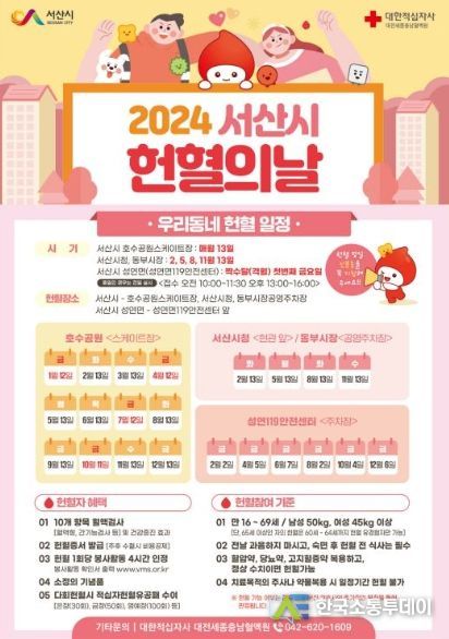 시는 헌혈자 지역화폐 지원사업과 함께 매 분기(2·5·8·11월) 13일 서산시청, 동부시장 공용주차장, 호수공원에서 정기 헌혈의 날을 운영한다.
