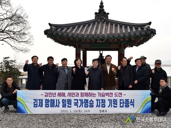 김제시는 지난 18일 민·관이 함께모여 ‘김제 망해사 일원’이 국가명승으로 지정받기를 염원하는 타종식을 김제 망해사에서 개최했다고 밝혔다.