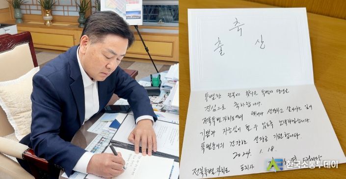 김지사는 축하카드에“특별한 전북에 찾아온 특별한 탄생을 진심으로 축하한다.”며,“전북특별자치도에서 태어나 성장하고 살아가는 일이 기쁨과 자긍심이 될 수 있도록 노력하겠다.”고 썼다.