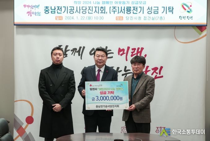 희망 2024 나눔캠페인 성금으로 22일 충남전기공사당진지회가 300만 원, 서룡전기(주)는 100만 원을 기부했다.