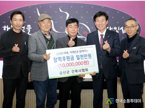 이날 기탁식에는 김석곤 회장을 비롯해 박범인 금산군수, 조신영 금산군교육사랑장학재단 이사장 등이 참석했다.