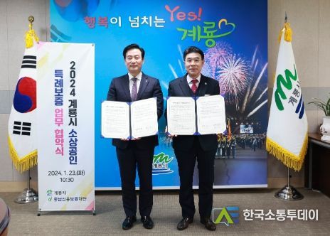 한국소통투데이 관리자 기자 | 계룡시는 23일 시청에서 충남신용보증재단과 소상공인 특례보증 및 대출이자 지원을 위한 협약을 체결했다고 밝혔다.