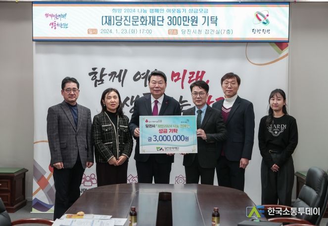 한국소통투데이 관리자 기자 | 당진문화재단이 지난 2023년 12월 29일 충남사회복지공동모금회에 이웃사랑성금 300만원을 기부하며, ‘희망 2024 나눔 캠페인’에 참여했다고 23일 밝혔다.
