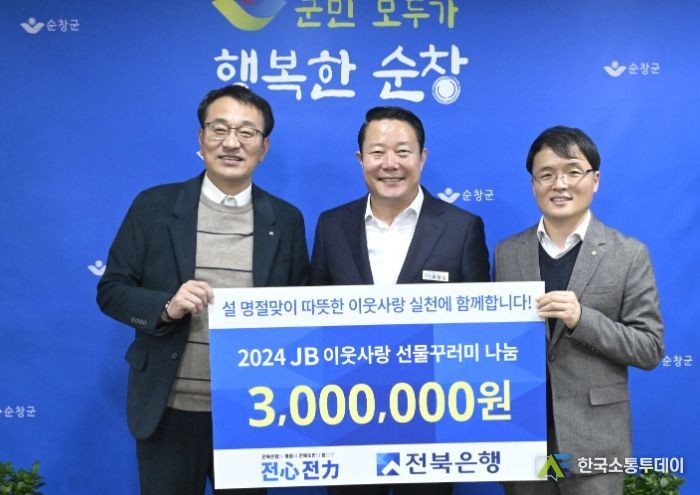 한편, 전북은행 순창지점은 매년 명절마다 어려운 이웃을 위한 나눔을 지속적으로 실천하며 나눔 리더로서 선한 영향력을 펼치고 있다.