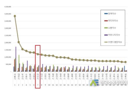 한국소통투데이 관리자 기자 | 아산시가 2024년 1월 대한민국 도시브랜드 평판 빅데이터 분석에서 전국 7위를 차지했다. 이는 해당 조사에서 아산시가 기록한 역대 최고 순위다.