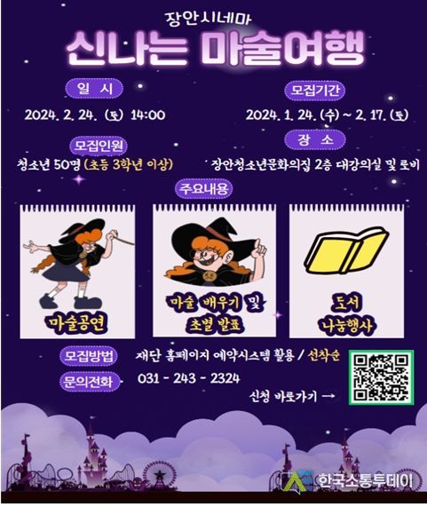 장안청소년문화의집 관계자는 “2024년도 올 한해는 작년도 문화의집을 이용하는 고객을 대상으로 진행한 고객만족도 결과를 반영한 다양한 사업을 추진하겠다.” 며 “이번 장안시네마 ‘신나는 마술여행’이 첫 시작이다.”라고 전했다.