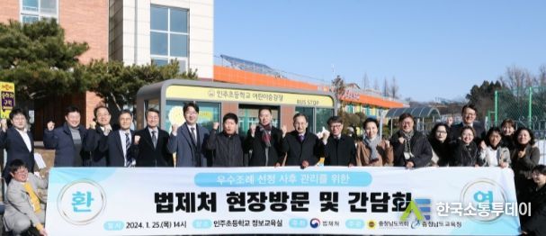 한국소통투데이 관리자 기자 | 충남도의회 교육위원회는 25일 아산시에 소재한 인주초등학교에서 충남도의회, 법제처, 충남교육청 관계자들이 참석한 가운데 우수 조례 선정 사후 관리를 위한 간담회를 개최했다.