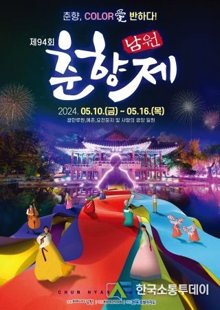 한국소통투데이 관리자 기자 | 남원시는 제94회 남원춘향제를 오는 5월 10일부터 5월 16일까지 7일간 남원시 광한루원 일대에서 ‘춘향, Color愛 반하다’라는 주제하에 다채로운 콘텐츠와 프로그램으로 시민참여가 확대된 축제로 개최할 계획이라고 밝혔다.