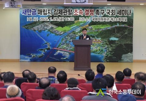 새만금 미래 김제시민연대는 26일 국회의원회관 제2소회의실에서 법률, 행정 및 도시개발 등의 각계 전문가와 정성주 김제시장, 이원택 국회의원, 황배연 김제시의회 부의장, 시의원, 새만금 미래 김제시민연대 위원 및 시민 등 200여명이 참석한 가운데 ‘새만금의 미래와 매립지 관할결정 촉구 세미나’를 개최했다고 밝혔다.
