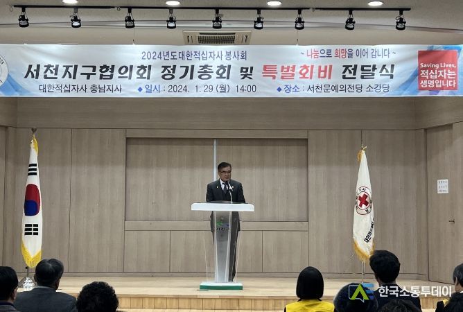 이날 정기총회에는 김기웅 서천군수와 김종언 대한적십자사 충남지사 부회장을 비롯한 기관단체장 등 60여 명이 참석한 가운데 국제적십자운동 기본원칙 낭독 및 봉사원 서약, 표창장 및 감사패 수여, 적십자 특별회비 전달 순으로 진행됐다.