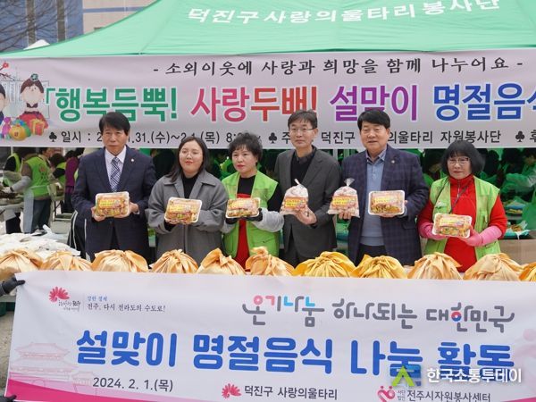 한국소통투데이 관리자 기자 | 전주시 덕진구 사랑의울타리자원봉사단은 1월 31일부터 2월 1일까지 민족 최대의 명절인 설을 앞두고 명절 음식을 만들어 소외계층에 직접 전달하는 ‘설맞이 명절음식 나눔’ 봉사활동을 펼쳤다.