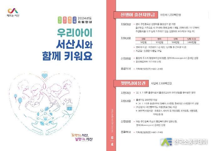 한국소통투데이 관리자 기자 | 충남 서산시가 2일 올해 임신·출산·육아·교육 지원 사항을 한 권으로 정리한 ‘우리 아이 서산시와 함께 키워요’를 발간해 누리집에 게시했다.