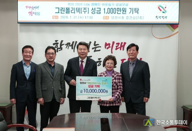 한국소통투데이 관리자 기자 | 그린폴리텍(주)은 31일 당진시청에 방문하여 이웃돕기 성금으로 1,000만 원을 기부했다.