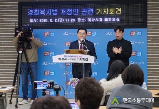 한국소통투데이 관리자 기자 | 박경귀 아산시장이 국립경찰병원 아산분원 설립 근거를 담은 ‘경찰공무원 보건 안전 및 복지 기본법 개정안’(경찰복지법 개정안)에 ‘예타 면제’ 조항이 반영되지 못한 것과 관련 2일 시청 중회의실에서 기자회견을 가졌다.