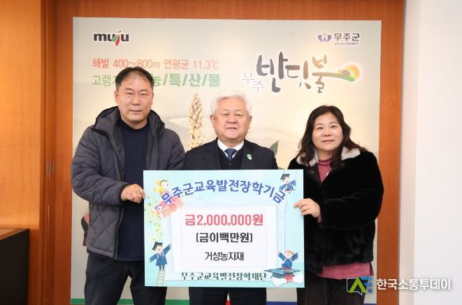 한국소통투데이 관리자 기자 | 무주군은 지난 2일 거성농자재 임춘자 사장이 무주군교육발전장학재단에 장학금 2백만 원을 기탁했다고 밝혔다.
