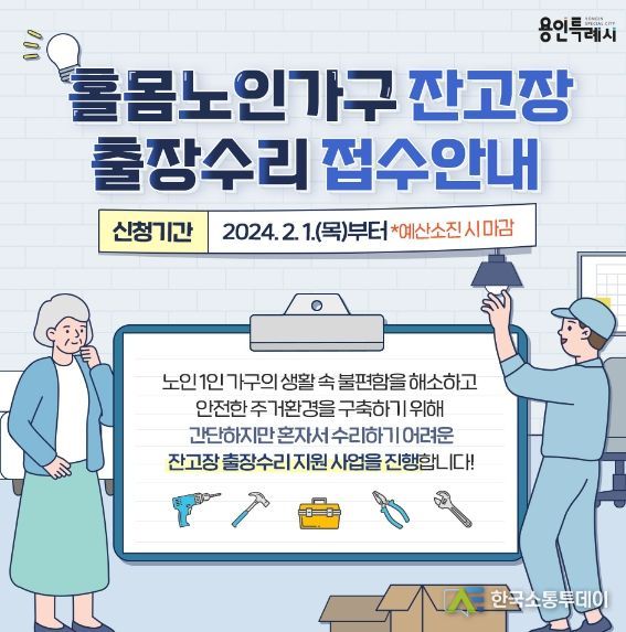 한국소통투데이 관리자 기자 | 용인특례시는 어르신 가구의 잔고장 수리나 교체 등의 서비스로 일상의 작은 불편부터 세밀하게 살피고, 현장에서 문제를 해결하는 복지 사업을 2월부터 진행한다.