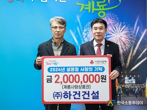 이응우 시장은 “따뜻한 이웃사랑을 실천해 주신 ㈜하건건설에 진심으로 감사드린다”며, “지원해 주신 계룡사랑상품권은 도움이 꼭 필요한 이웃에게 소중히 전달하겠다”고 말했다.
