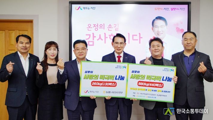 한국소통투데이 관리자 기자 | 충남 서산시가 지난 6일 농협 서산시지부와 우리농업지키기운동본부 충남세종지역본부에서 설 명절 맞아 어려운 이웃에게 전해달라며 떡국떡 570박스를 서산시에 기탁했다고 밝혔다.