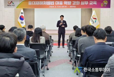 한국소통투데이 관리자 기자 | 충남 서산시가 7일 시청 대회의실에서 부시장과 각 부서장, 관리감독자 등 200명을 대상으로 중대재해처벌법 대응 역량 강화 실무 교육을 실시했다고 밝혔다.