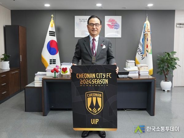 한국소통투데이 관리자 기자 | 박상돈 천안시장이 8일 시민 프로축구단인 천안시티FC 지원을 위해 2024시즌 K리그2 시즌권 구매 릴레이에 1호 구매자로 동참했다.