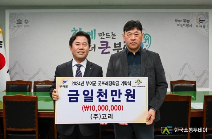 한국소통투데이 관리자 기자 | 고리 주식회사가 지난 23일 부여군청을 방문해 지역인재 육성을 위한 장학금 1천만 원을 (재)부여군굿뜨래장학회에 기탁했다.