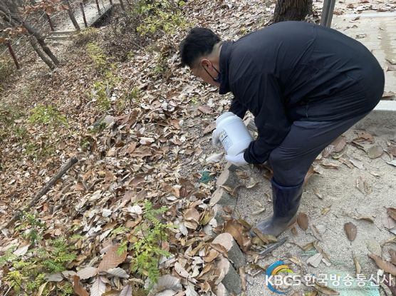 한국방송통신사 관리자 기자 | 구리시는 지난 1일과 3일 두 차례에 걸쳐 시민들의 안전한 약수터 이용을 위해 야생 멧돼지 출몰 예상지점에 멧돼지 기피제를 살포했다.