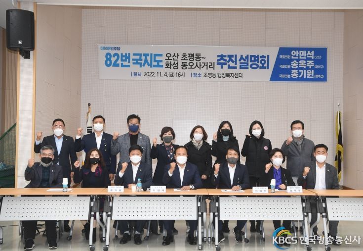 한국방송통신사 관리자 기자 | 이권재 오산시장이 지난 4일 인근 지역 정치권과 함께 출퇴근 만성정체로악명 높은 국지도 82호선 갈천~오산 가수 구간의 도로 확장공사 설명회에 참석했다.
