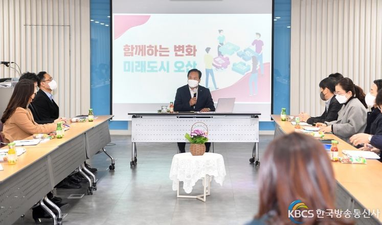 한국방송통신사 관리자 기자 | 이권재 오산시장이 시정발전을 위한 실무진의 다양한 의견을 수렴하기 위해 17일까지 4회에 걸쳐 6급 공무원과 대화의 시간을 가진다.