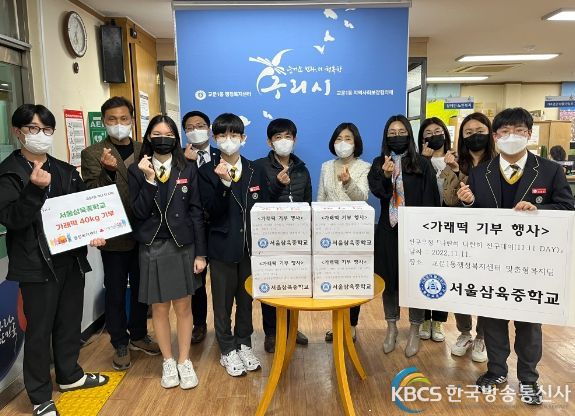 한국방송통신사 관리자 기자 | 구리시 교문1동 행정복지센터(동장 김검재)는 지난 11일 서울삼육중학교(교장 김종섭)로부터 관내 저소득 취약계층 가구를 위한 가래떡 40kg를 전달받았다.