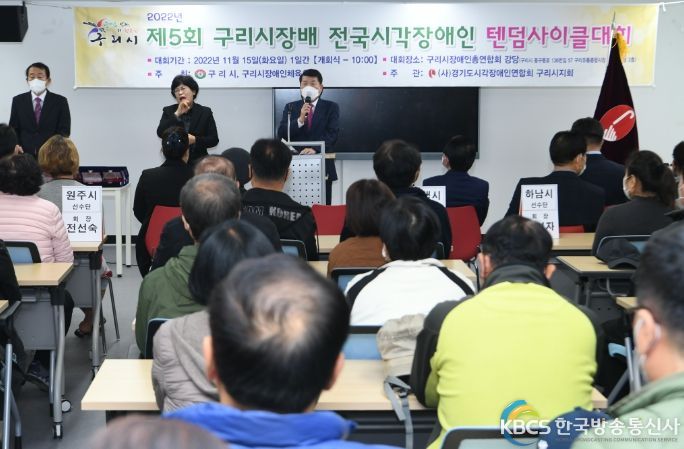 한국방송통신사 관리자 기자 | 백경현 구리시장은 15일 ‘구리시장배 전국시각장애인 텐덤사이클대회’에 참석해 참가선수들을 격려하고 자원봉사자들에게 고마움을 전했다.
